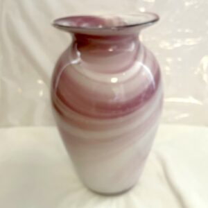 Elegante violett-weiße Glasvase, handgeblasen und einzigartig, ideal als Dekoration für Ihr Ess- oder Wohnzimmer. Mit einer Höhe von 24 cm und einem marmorierten Muster eignet sich die Vase perfekt für Blumensträuße und als stilvolles Geschenk.