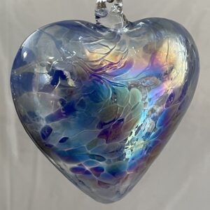 Herz Groß zum hängen bunt Glas Herz Ornament blau weiß klar Fensterdekoration mundgeblasenes Kristallglas Breite 12 cm Höhe ca. 13 cm Tiefe 5,5 cm