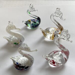 Glas Schwan Glastierset 5tlg farb. sortiert zum hängen oder hinstellen Höhe ca. 7 cm