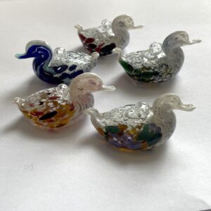 Glas Enten Glastierset 5tlg farb. sortiert zum hängen oder hinstellen Höhe ca. 3 cm Länge 4 cm
