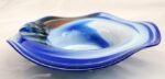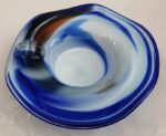 Aschenbecher runder Glasaschenbecher farbiger Aschenbecher blau beige weiß farbiger Aschenbecher mit welligem Rand mundgeblasenes Einzelstück Durchmesser ca. 18 cm