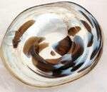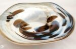 Aschenbecher runder Glasaschenbecher farbiger Aschenbecher rot beige weiß farbiger Aschenbecher mit welligem Rand mundgeblasenes Einzelstück Durchmesser ca. 18 cm