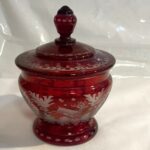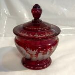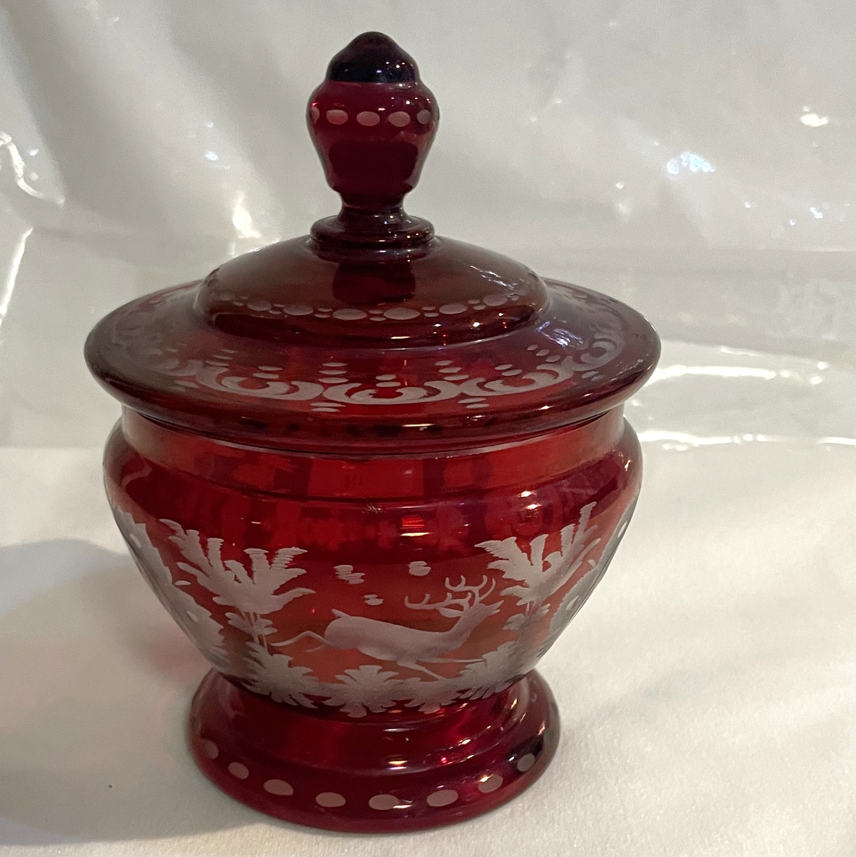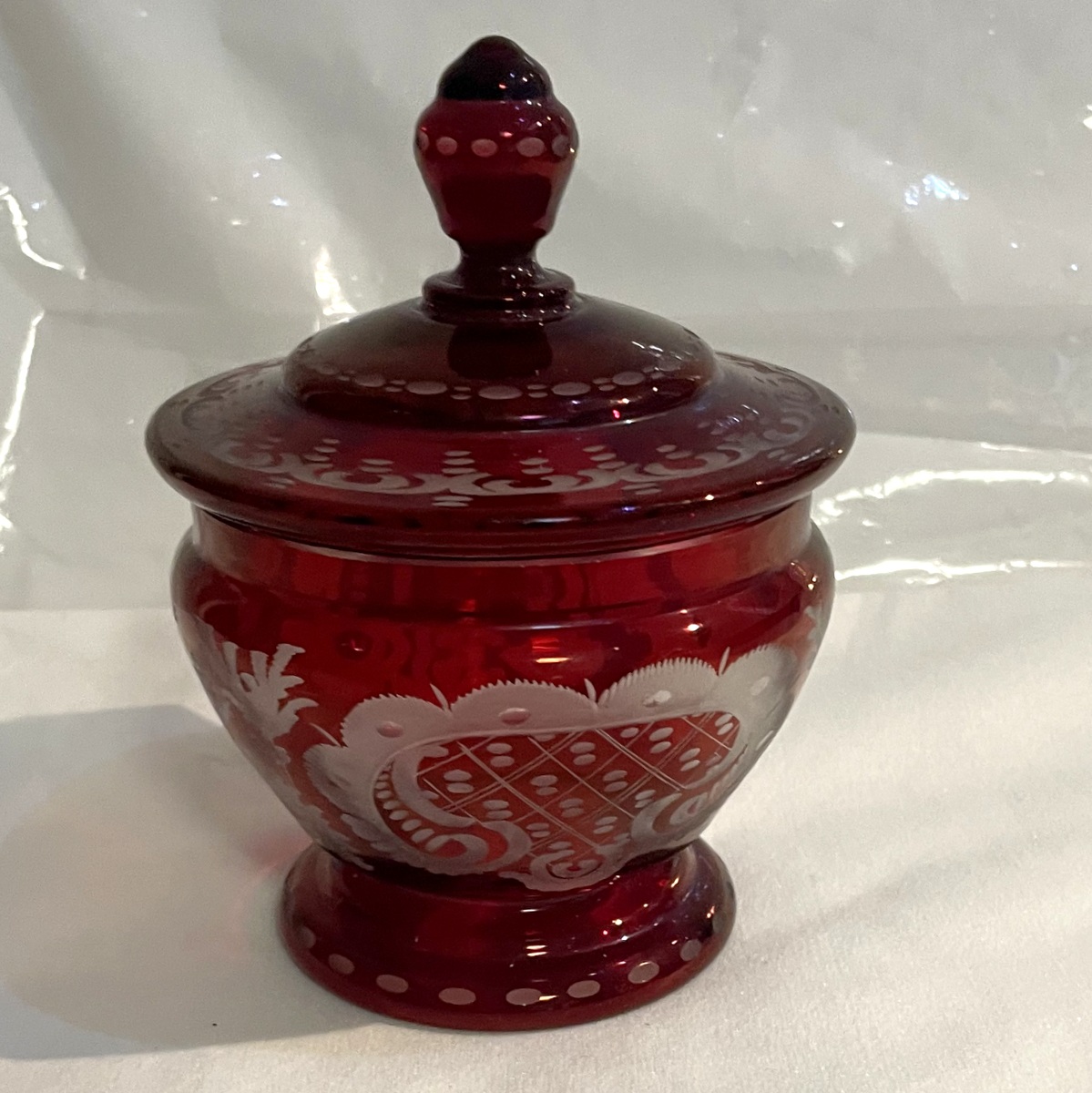 Egermann Deckeldose antik rubinrot geschliffen Höhe ca. 11,5 cm und Durchmesser 10 cm
