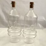 Essig Öl Set antiker Stil Aufschrift Aceto & Olio Menage Höhe 17 cm Klarglas mundgeblasen