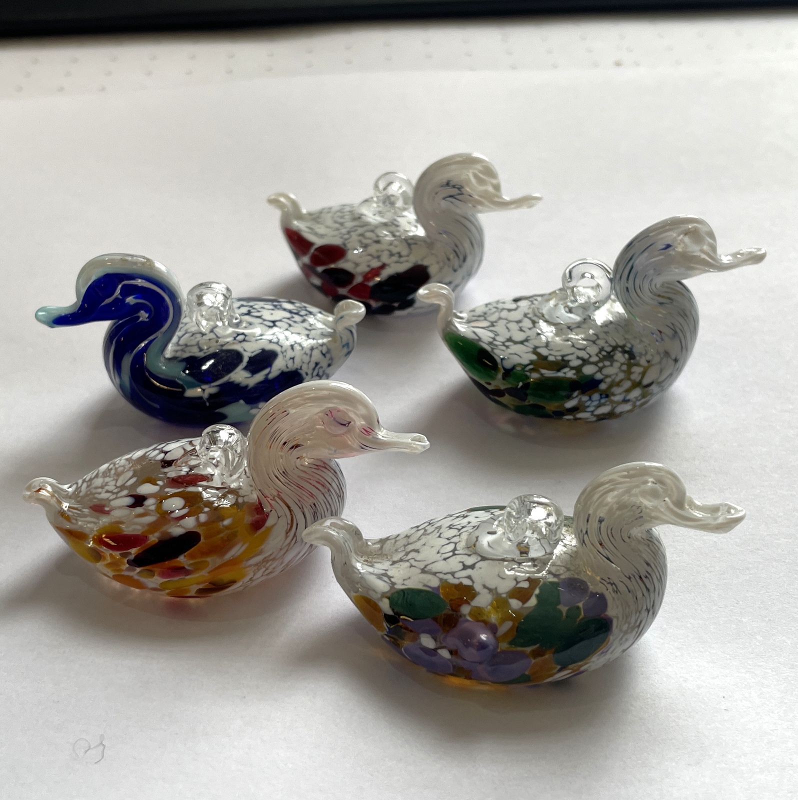 Glas Enten Glastierset 5tlg farb. sortiert zum hängen oder hinstellen Höhe ca. 3 cm Länge 4 cm