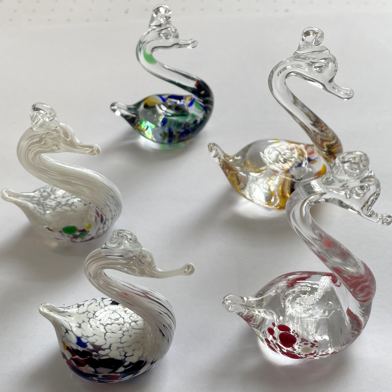 Glas Schwan Glastierset 5tlg farb. sortiert zum hängen oder hinstellen Höhe ca. 7 cm
