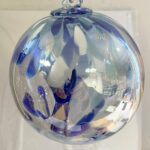 Kugel zum hängen mit Innenleben bunte Glaskugel Ornament blau weiß klar irisierend Fensterdekoration mundgeblasenes Kristallglas Durchmesser ca. 15 cm
