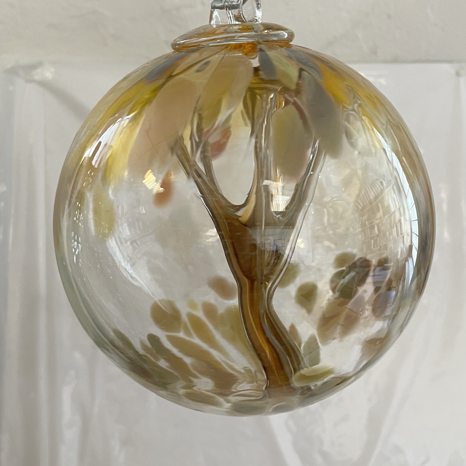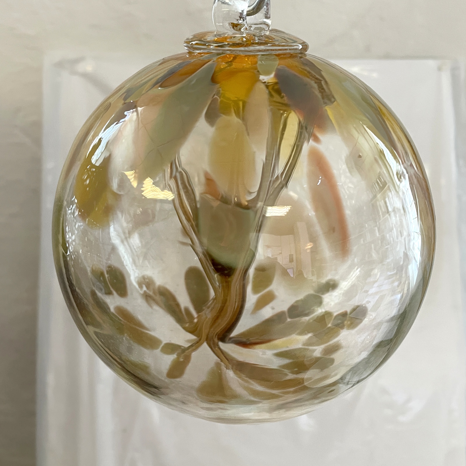 Kugel zum hängen mit Innenleben bunte Glaskugel Ornament Amber gold irisierend Fensterdekoration mundgeblasenes Kristallglas Durchmesser ca. 15 cm Oberstdorfer Glashütte