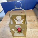 Metall Laterne Lampe Höhe 24 cm Breite 12 cm Tiefe 12 cm Farbe gold ohne Deko