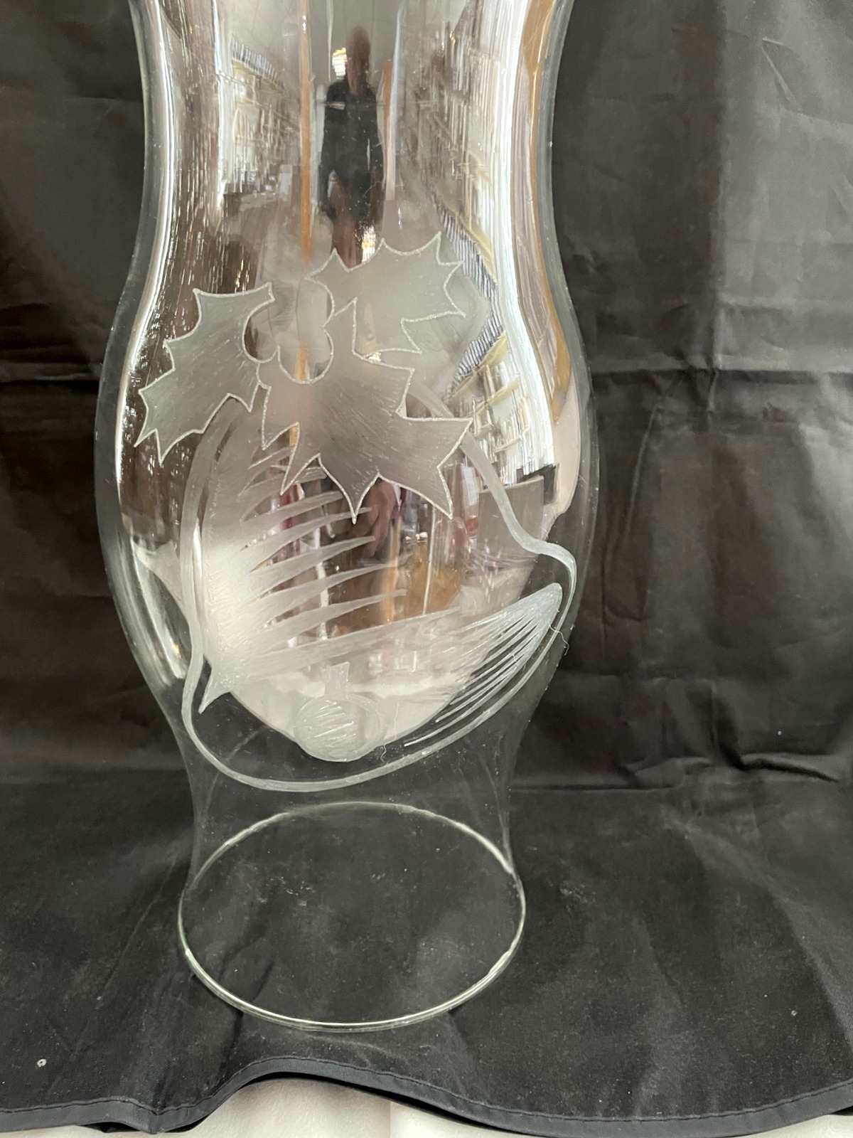 Windlicht großer Glaszylinder miteingravierte Glocke ohne Boden klar Öffnung unten und oben ca. 13 cm, Höhe ca. 40 cm Durchmesser Breiteste Stelle 14 cm mundgeblasen